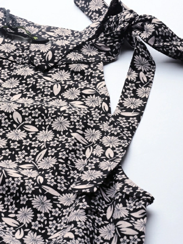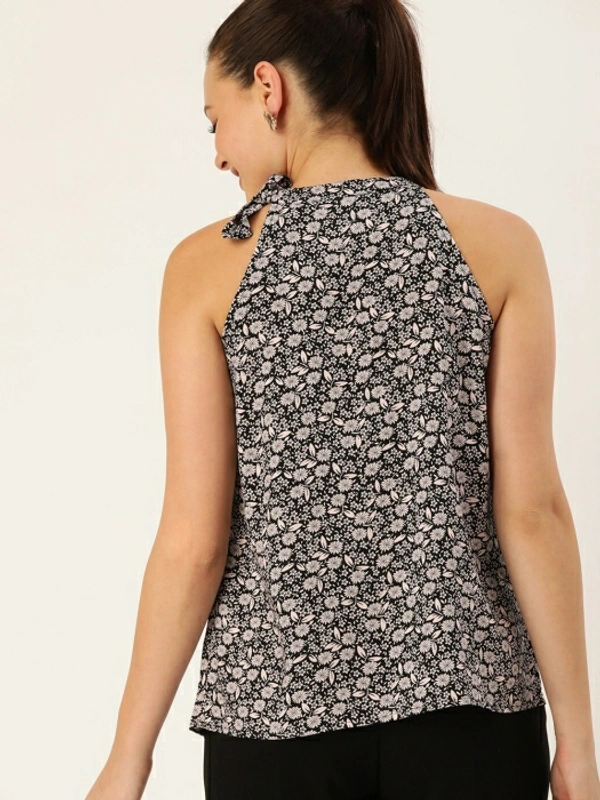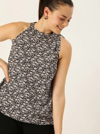 Dressberry Casual No Sleeve Printed Women Black Top