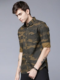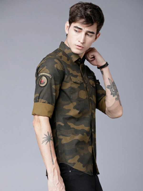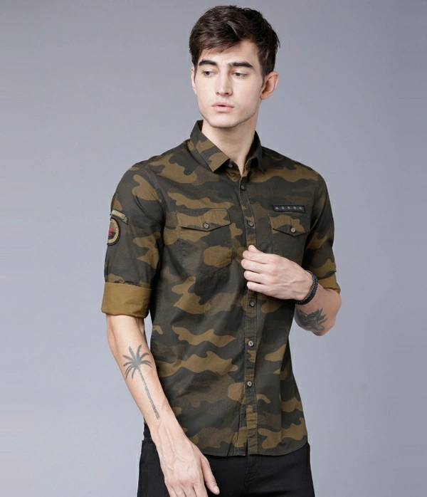 Highlander Men Military Camouflage Casual Green Shirt