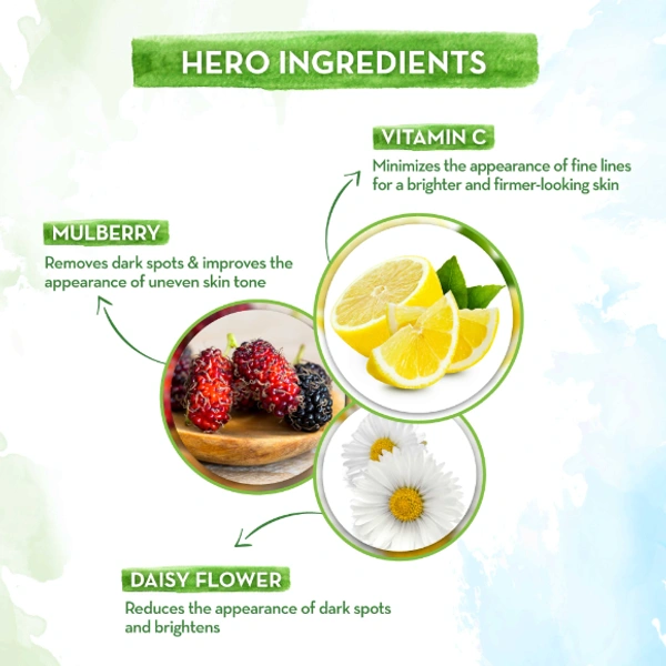 Mamaearth Bye Bye Blemishes Face Cream is an effective cream enriched with Mulberry Extract, Daisy Flower Extract, and Vitamin C. Its unique and natural formulation prevents melanin synthesis and gives you soft and glowing skin. It reduces pigmentation by restricting melanin deposits that appear as dark spots, patches, and hyper-pigmentation, thereby offering an even skin tone. It also has anti-bacterial and anti-fungal properties. It is non-greasy and gets absorbed by the skin quickly. This pigmentation cream is dermatologically tested and can be used on oily, normal, dry, combination and sensitive skin. The product has no harsh chemicals and is free of SLS, Parabens and Mineral Oil.