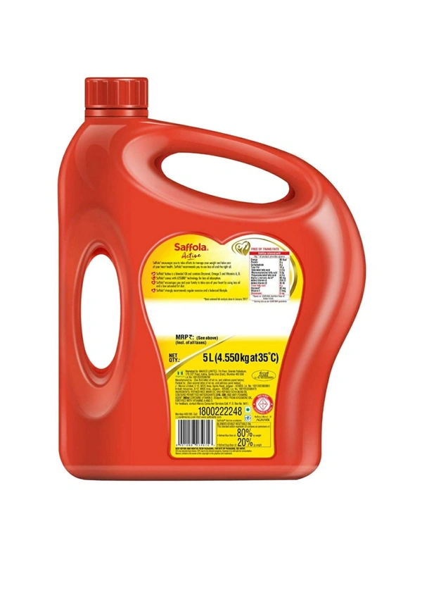 Saffola Active provides a balance of fatty acids with additional benefits of Omega 3. Omega 3 fatty acids are associated with many health benefits. Additionally, it has the advantage of containing antioxidants such as Oryzanol and Vitamin E. Saffola Active is a unique blend of 80% refined rice bran oil and 20% soybean oil.