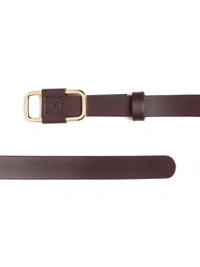 Brown Slider Buckle Slim Leather Belt, in Leather fabric, NA, NA, Width: 2cm, Slider Buckle, NA Hemline and features Rectangle Buckle