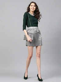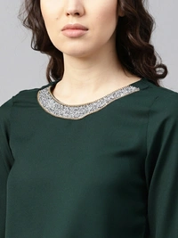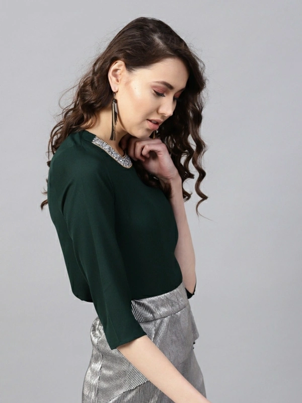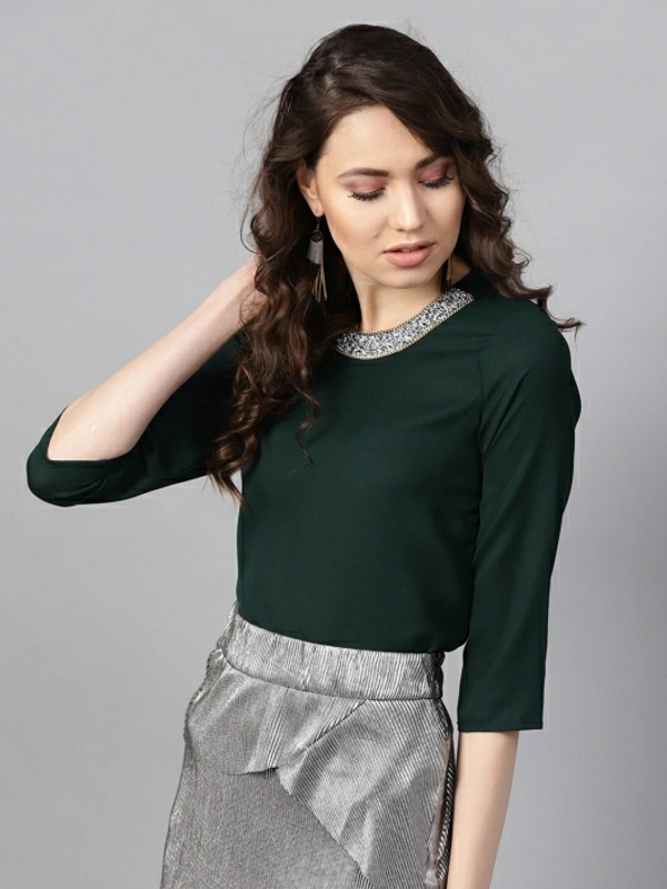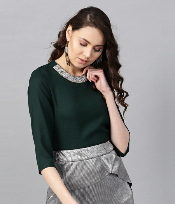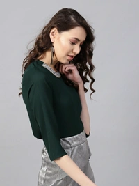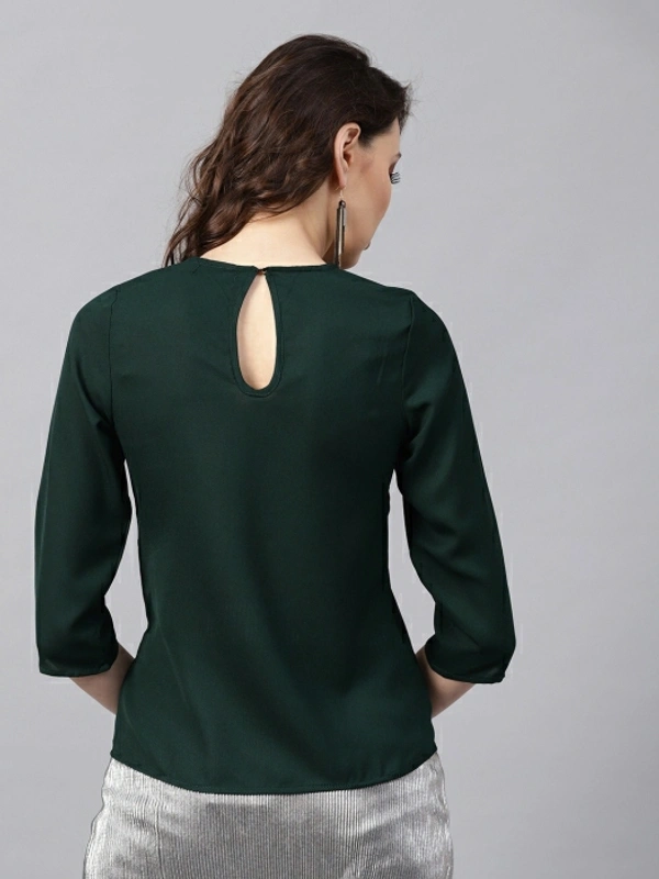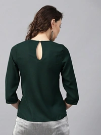 Sassafras Casual 3/4 Sleeve Solid Women Green Top