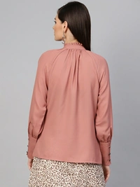 Sassafras Casual Cuffed Sleeve Solid Women Pink Top