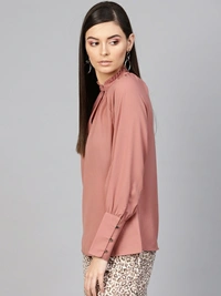 Ruffle Neck, Cuffed Sleeves Fabric: Polycotton Pattern: Solid Type: Regular Top Pack of 1 14 Days Return Policy, No questions asked.