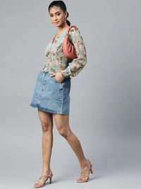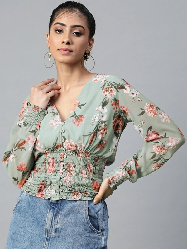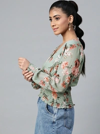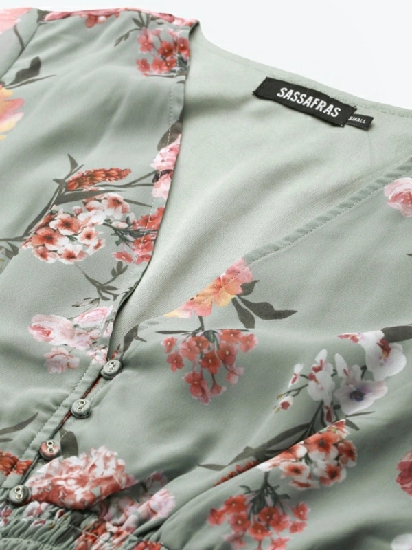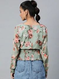 Sassafras Casual Full Sleeve Printed Women Light Green Top