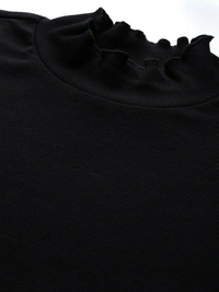 Sassafras Casual Regular Sleeve Solid Women Black Top